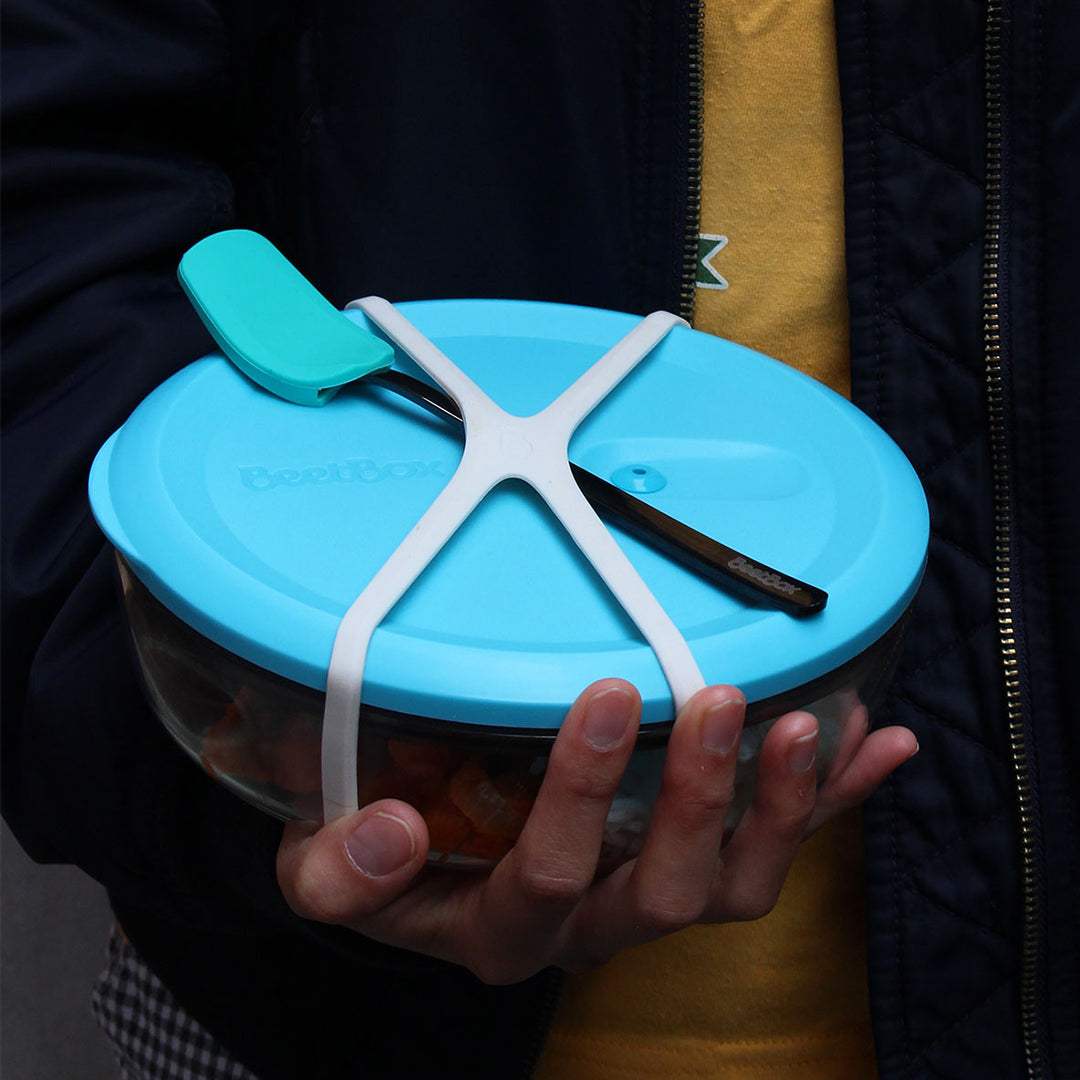 Our all new "GO" 850ml Glass Lunch Bowl product. BLACK colourway, featuring black moulded lid with pressure release valve and black silicone Xband.