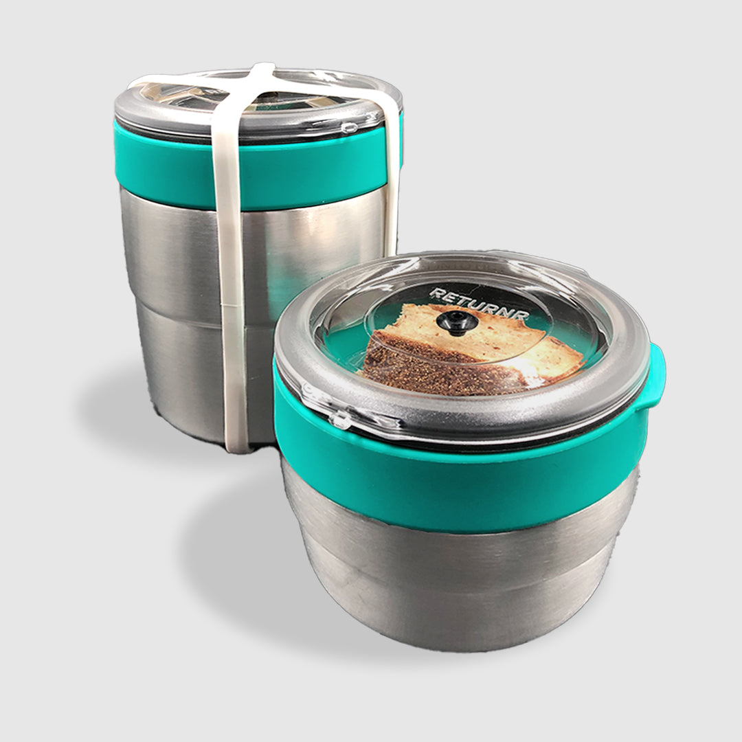The 700ml + 300ml double compartment Brekkie Bowl. GREEN colourway, featuring insulated twin wall stainless steel 700ml bowl with 300ml silicone booster insert. Ultra clear Tritan lid with air vent and silicone seal. Silicone Xband to keep extra secure in transit. Keep foods separate during transit and storage, mix together or enjoy separately.